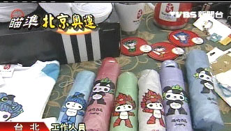 另外,以?shī)W運(yùn)福娃為主題的雨傘一把賣179元(新臺(tái)幣,下同),印有福娃圖案的兒童帽一頂189元,奧運(yùn)授權(quán)背包一個(gè)要價(jià)399元,而印有北京奧運(yùn)圖案的保溫杯一個(gè)賣799元,還有授權(quán)的T恤一件新臺(tái)幣448元。