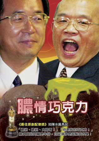 臺(tái)“全民麻辣鍋”網(wǎng)站最近開設(shè)了“2005至2007臺(tái)灣奧卡斯獎(jiǎng)——民進(jìn)黨執(zhí)政之荒謬劇場(chǎng)”票選活動(dòng),以反諷、笑中帶淚的方式為民進(jìn)黨“執(zhí)政”頒獎(jiǎng)。民進(jìn)黨4大天王及扁妻皆成為臺(tái)灣民眾惡搞對(duì)象,通通上榜,并奪得各項(xiàng)大獎(jiǎng)。