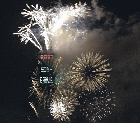 迎接2007年,臺北地標(biāo)101大樓施放璀璨炫麗的煙火營造新年歡樂氣氛。一年又過了,迎接2008的到來!記者侯世駿/攝影