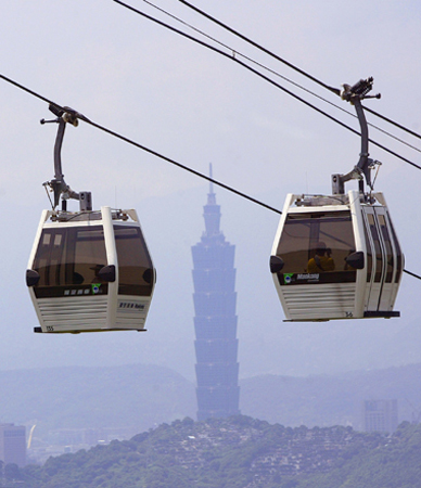 雖有打雷閃電停駛、當(dāng)機(jī),以及悶熱的不良現(xiàn)象,大家還是無法抵擋高空美景誘惑,臺(tái)北貓空纜車7月營(yíng)運(yùn)以來已有200萬人次搭乘。圖為貓纜遠(yuǎn)眺臺(tái)北101。記者周永受/攝影