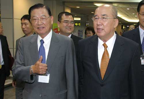 中新網(wǎng)5月31日電 中國(guó)國(guó)民黨主席吳伯雄結(jié)束在大陸為期六天的訪問(wèn)行程,今天傍晚返抵臺(tái)灣,海基會(huì)董長(zhǎng)江丙坤等人前往接機(jī)。