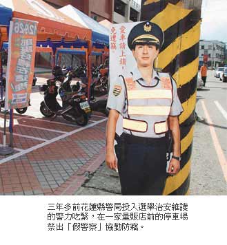 警察立牌,是出自新竹縣警局督察長(zhǎng)趙成之的點(diǎn)子,四年前他擔(dān)任桃園縣警局大溪警分局分局長(zhǎng)時(shí),自己上陣當(dāng)模特兒,制作手握霰彈槍的立像,擺在轄區(qū)銀行門口,讓民眾印象深刻。