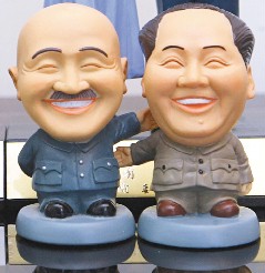 據(jù)臺灣《聯(lián)合報(bào)》報(bào)道,國民黨黨史館主任邵銘煌也證實(shí),為迎接大陸觀光客,黨史館與廠商制作一系列歷史人物公仔,除蔣介石、宋美齡夫婦的Q版公仔,還有蔣介石與毛澤東“歡笑言和版”,六十年前的硝煙炮火都在一笑中化解。
