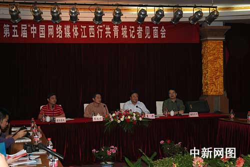 中新網(wǎng)10月20日電 參加“第五屆中國網(wǎng)絡(luò)媒體江西行”的采訪團成員19日抵達共青城,圖為記者見面會現(xiàn)場。近年來,共青城圍繞“創(chuàng)新創(chuàng)業(yè)先行區(qū)、文化旅游帶動區(qū)、生態(tài)和諧示范區(qū)”,重點發(fā)展紡織服裝、文化旅游、教育與高新三大產(chǎn)業(yè),取得顯著成效。