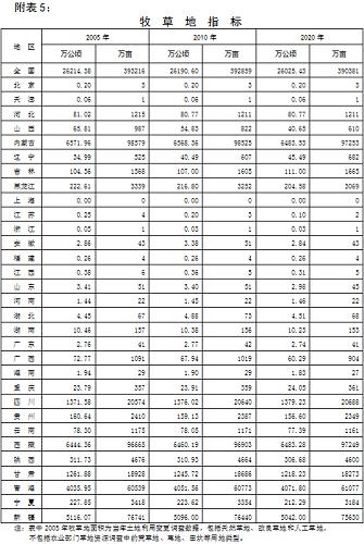 附表5:牧草地指標(biāo)