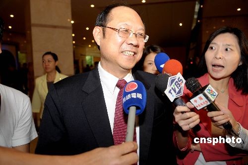 圖為海協(xié)會(huì)常務(wù)副會(huì)長(zhǎng)鄭立中抵達(dá)深圳后即被媒體記者追訪。