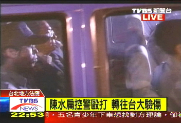 法院在晚間十時五十分左右派車載陳水扁前往臺大醫(yī)院