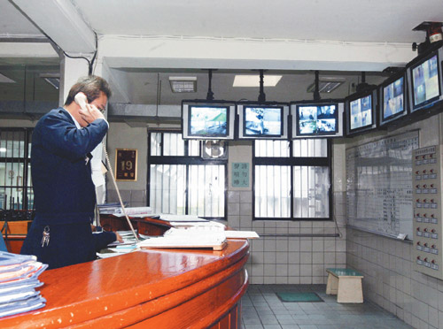 每個(gè)舍房門口都有管理員坐鎮(zhèn),從監(jiān)視器看陳水扁的一舉一動(dòng)。另可從監(jiān)窗口查看,中央臺也有器作第二線監(jiān)事。圖片來源:臺灣《聯(lián)合報(bào)》