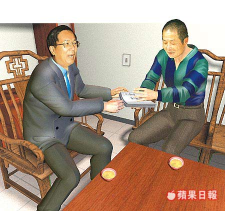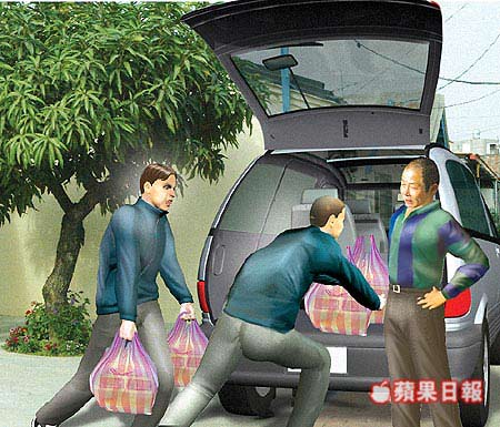扁囑咐隨扈人員將五大包,面額共2500萬(wàn)元的紙錢(qián),送到休旅車(chē)上。