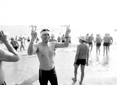 轉(zhuǎn)眼間,時(shí)間過去了半個(gè)多小時(shí),主辦方規(guī)定的結(jié)束時(shí)間到了,還有不少人舍不得上岸,只好讓救生艇出動(dòng)去清場(chǎng)。岸上的觀眾則熱情地等待著最后一名游泳者上岸,并報(bào)以熱烈的掌聲。(記者 葉秀月/文 吳曉平/圖)
