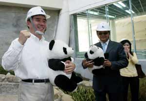 另據(jù)報道,臺北市動物園27日以公開4月即將完工的熊貓館,展現(xiàn)爭取熊貓展出企圖心,市長郝龍斌站在熊貓館前宣示:“熊貓預(yù)計10月抵臺,檢疫后11月開放展示!