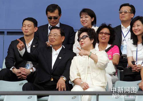 ;鶗(huì)董事長(zhǎng)江丙坤一行在北京奧運(yùn)會(huì)場(chǎng)館五棵松棒球場(chǎng)參觀。中新社記者 張宇 攝