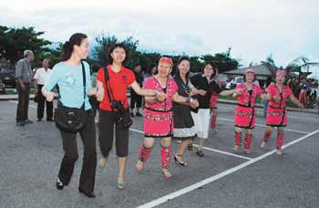 昨天傍晚,大陸踩線團又前往臺東縣。臺東縣長鄺麗貞特別帶領縣內20余家旅社、飯店業(yè)者代表,前往臺東市娜路彎大飯店與踩線團餐敘,鄺麗貞除了準備數(shù)十份旅游手冊與折頁,向團員介紹臺東的風土人文,還送每名大陸團員洛神花蜜餞、太峰高山茶等臺東特產(chǎn),希望這些來自大陸各旅行社的考察團員,未來能把臺東納入陸客來臺旅游行程。