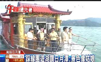 據(jù)臺灣TVBS報道,大陸踩線團到日月潭觀光,當然不會錯過搭船游湖這個行程。2艘豪華游艇,早就在湖邊等候,等待踩線團成員一上船,直奔邵族祖靈地那魯島。