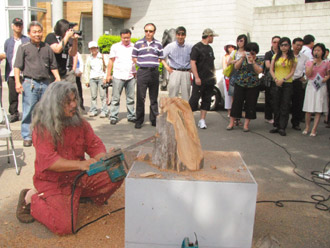 踩線團昨天上午造訪三義,當(dāng)?shù)匚骱燃俅逭垇淼窨碳冶硌荼;木雕博物館則請到藝師現(xiàn)場示范木雕,以樟木為材,短短十分鐘就創(chuàng)作一座母抱子雕像,踩線團大贊“有功力”。