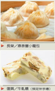 臺灣復(fù)興航空昨天首先公布餐點(diǎn),臺灣飛大陸的去程準(zhǔn)備八字面包(一種商務(wù)艙的西點(diǎn)餐包,上面有一個像“八”字一樣的記號)、香菇燒雞飯、紅燒獅子頭,回程是臺式紅燒排骨、鹵蛋、金瓜雞絲米粉及臺式肉燥米粉,也不排除拿出自家空廚最熱門的牛軋?zhí)钱?dāng)小禮物。