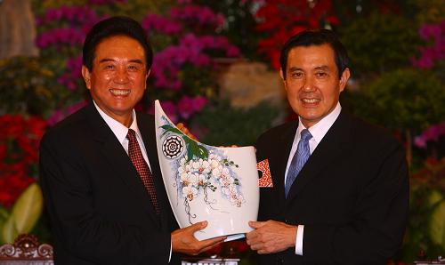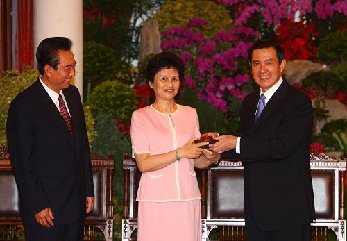 陳云林向馬英九贈(zèng)送禮品。