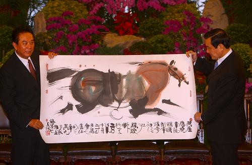 陳云林贈(zèng)送給馬英九的是大陸著名畫(huà)家韓美林的一幅駿馬畫(huà)作。