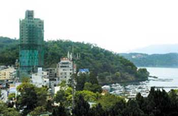 看好大陸觀光客商機(jī),打著房?jī)r(jià)一晚一萬(wàn)六千元起跳、號(hào)稱住宿等級(jí)比涵碧樓更高級(jí)的日月潭日月行館,去年才取得南投縣政府的BOT特許經(jīng)營(yíng)權(quán),原本預(yù)估要兩年才能完工,現(xiàn)在則是日夜趕工,計(jì)劃提前半年完工營(yíng)運(yùn)。轟轟的機(jī)具聲,讓住在旁邊的“觀光局”日月潭風(fēng)景管理處長(zhǎng)曾國(guó)基都抱怨說(shuō):“半夜兩點(diǎn)都會(huì)被嚇醒!