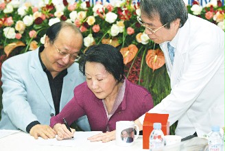 中新網(wǎng)11月18日電 據(jù)臺灣《聯(lián)合報》報道,臺中市長胡志強的夫人邵曉鈴昨天出院,她感謝所有人,并寫“Thank you”感謝醫(yī)師。主治醫(yī)師鄭隆賓說,邵曉鈴大腦受傷,掌管語言、空間與動作的區(qū)域受損,連提筆都困難,筆劃更是擠成一團,字體左右相反,單是名字就學了兩個多月。