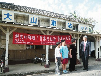 據(jù)臺灣《聯(lián)合報(bào)》報(bào)道,網(wǎng)絡(luò)上最近流傳一張標(biāo)題為“吼!我想要買火車票,但是不敢買!”的照片,因背景是古色古香的苗栗后龍鎮(zhèn)大山火車站,站前掛“親愛的鄉(xiāng)親,買票是犯法,賣票也有罪”的反賄選布條。