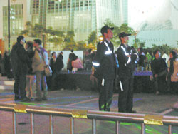 現(xiàn)場氣氛尷尬,因舞臺(tái)前主辦單位還安排了兩位真警察站崗,兩位警察見狀,一動(dòng)也不動(dòng)。記者問:“你看了覺得如何?”警察氣憤地說:“有很多人來問我,但那些一看就知道是假的!睋(jù)悉,最后該活動(dòng)仍選出比基尼冠軍,巧的是,得獎(jiǎng)的女子又是脫掉比基尼用手遮住重點(diǎn)的舞者。