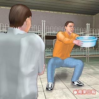 2、恐怖鐵板橋:兩手撐地,翹起臀部,在臀部放上臉盆及其它任何物品,只要東西掉下來(lái)即遭毆打。