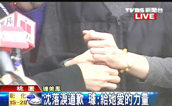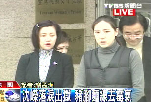 中新網(wǎng)2月26日電 2001因為散布璩美鳳光盤入監(jiān)服刑1年的沈嶸今天出獄,璩美鳳和沈野夫婦及40名獨家報道的員工,前往桃園女子監(jiān)獄接沈嶸出獄,沈嶸落淚向璩美鳳鞠躬致歉,璩美鳳則贈送佛珠,希望給她力量。