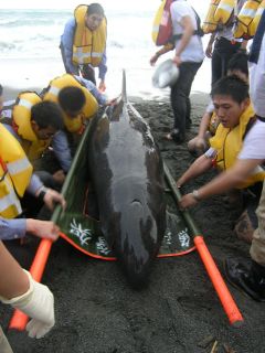 一偽虎鯨擱淺花蓮海攤 難存活被施行安樂死(圖)