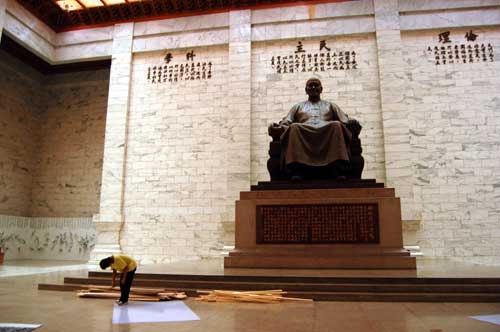 一大早中正紀念堂的大門一打開,觀光客們迫不及待進入大廳和蔣介石銅像合影留念。不少人都認為,把特展上花花綠綠的風(fēng)箏、五顏六色的圖片廣告牌移除,恢復(fù)到像以往的模樣,看起來莊嚴多了,也比較順眼,只可惜臺軍儀隊和憲兵沒有同時恢復(fù)表演和站崗,感覺上似乎少了點什么。