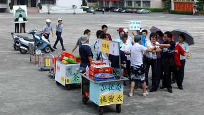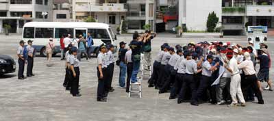 上午模擬演練的狀況,首先是風(fēng)景區(qū)“鏢客”和大陸客買賣發(fā)生糾紛,警察據(jù)報(bào)到場依違反社會(huì)秩序維護(hù)法將攤販帶回偵辦;另一個(gè)狀況則是大陸觀光團(tuán)在“中正紀(jì)念堂”遇上激進(jìn)團(tuán)體散發(fā)文宣,沖突一觸即發(fā),轄區(qū)警局緊急趕到現(xiàn)場布署,利用人墻隔開,讓大陸客安全搭上游覽車,同時(shí)驅(qū)離鬧事群眾化解危機(jī),示范內(nèi)容生動(dòng)、逼真。