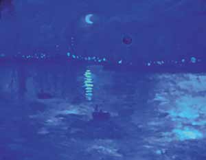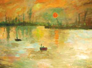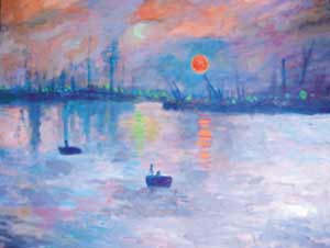 中新網(wǎng)7月9日電 莫內(nèi)名畫“印象‧日出”,也有“日落”、“夜幕”版嗎?據(jù)臺(tái)灣《聯(lián)合報(bào)》報(bào)道,臺(tái)大機(jī)械工程系教授黃秉鈞利用調(diào)控投射在名畫上的彩色LED光源,制造出名畫不同風(fēng)貌,發(fā)展出嶄新的“LED歐普藝術(shù)”。