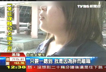 她說:“因為身材而離職,我覺得很難過,因為我工作態(tài)度,我覺得我很認(rèn)真!彼說:“很受傷,比失戀還要受傷,只要一聽到我是因為胖而離職,我就會哭。”