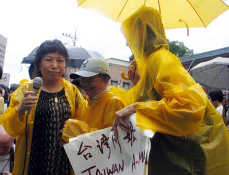 中新網(wǎng)7月16日電 曾被日本強(qiáng)迫征調(diào)為日軍慰安婦的臺(tái)灣阿嬤吳秀妹,今天由臺(tái)灣“婦女救援社會(huì)福利事業(yè)基金會(huì)”董事長(zhǎng)葉毓蘭及董事陳淑麗等陪同,冒著大雨在首爾市日本大使館前高唱“雨夜花”,抗議日本軍國(guó)主義摧殘她的青春,并要求日本政府公開(kāi)道歉及給予賠償。