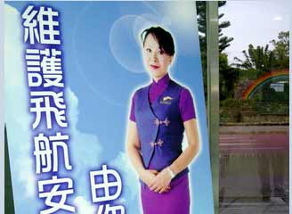 中新網(wǎng)8月1日電 在臺(tái)東縣境內(nèi),縣長(zhǎng)鄺麗貞可說(shuō)是“無(wú)所不在”,一下是推銷(xiāo)臺(tái)東米的農(nóng)婦,一下又成了飛行傘教練,轉(zhuǎn)個(gè)身又看見(jiàn)她拿著釋迦在對(duì)你微笑;進(jìn)出臺(tái)東機(jī)場(chǎng)好幾次,有一次才突然驚覺(jué),以前對(duì)著旅客微笑,“注意飛安”的那個(gè)與人等高的廣告牌空姐,竟然也是鄺麗貞。