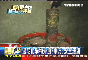 化學(xué)品上頭寫著DS2-消除劑,生產(chǎn)日期是1989年3月,有效期限只能到1992年3月,全是臺軍聯(lián)勤204廠所制造。制造方表示說:這些被棄過期化學(xué)品“對人體沒有影響,消除劑里頭有強(qiáng)堿,對環(huán)境會有疑慮,我們會專人回收處理!