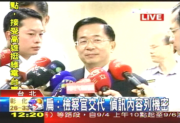 中新網(wǎng)9月5日電 陳水扁今天(5日)上午以證人身份到臺北地檢署應(yīng)訊,經(jīng)過短短1個多小時的偵訊后離開。陳水扁在北檢門口向媒體表示,今天檢察官有特別交代,所有的偵訊內(nèi)容都列為機(jī)密,也要求今天所有在場的當(dāng)事人、證人、律師都不得公開。