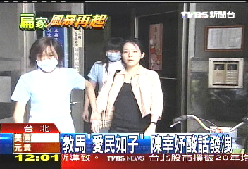 據(jù)臺(tái)灣TVBS報(bào)道,走出電梯間,面對(duì)記者,陳幸妤似乎早就準(zhǔn)備好臺(tái)詞。她說(shuō):“我‘建議’你們用十分之一(人數(shù))的記者就好,去把馬唯中‘圍’回來(lái),這樣子馬英九他就學(xué)會(huì)怎么叫‘愛(ài)民如子’!