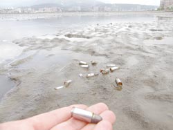 據(jù)臺(tái)灣《中國(guó)時(shí)報(bào)》報(bào)道,一名陳姓釣客12日中午趁淡水河退潮,前往事發(fā)的沙洲帶釣魚,發(fā)現(xiàn)距離河岸十米的沙洲泥土中出現(xiàn)大量銀色小圓點(diǎn),在陽光折射下更顯刺眼,原以為是釣魚用的鉛球,靠近一看才確認(rèn)是未擊發(fā)的子彈。