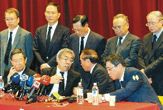 中新網(wǎng)10月17日電 臺(tái)塑集團(tuán)創(chuàng)辦人王永慶遺體今天清晨6點(diǎn)30分返臺(tái),臺(tái)塑集團(tuán)“七人決策小組”也在集團(tuán)總裁王文淵帶領(lǐng)下,上午9點(diǎn)20分舉行創(chuàng)辦人過(guò)世后的首次記者會(huì)。王文淵強(qiáng)調(diào),臺(tái)塑集團(tuán)現(xiàn)有的“七人小組”運(yùn)作模式不受創(chuàng)辦人過(guò)世而有任何重大轉(zhuǎn)變,但會(huì)“因時(shí)間、空間改變,進(jìn)行適時(shí)微調(diào)”。