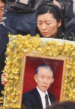 中新網(wǎng)10月18日電 據(jù)臺(tái)灣《聯(lián)合報(bào)》報(bào)道,臺(tái)塑創(chuàng)辦人王永慶的靈柩,昨天上午八時(shí)從桃園機(jī)場(chǎng)移至桃園縣龜山鄉(xiāng)長(zhǎng)庚大學(xué)活動(dòng)中心,當(dāng)二房長(zhǎng)子王文洋捧著靈位,三房長(zhǎng)女王瑞華捧著黃花鑲邊的遺像,跟著扶靈的家眷步入靈堂時(shí),在場(chǎng)人士無不肅穆哀容,悲痛飲泣。
