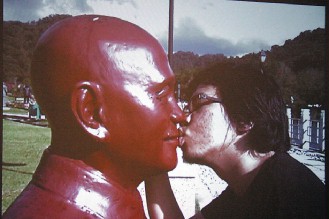 中新網(wǎng)10月27日電 臺(tái)灣交通大學(xué)一男子,到一處收集蔣介石銅像最多的公園,狂吻蔣介石銅像“足足6分鐘”,該男子還把這段過程拍成影片,在學(xué)校藝文空間展出,備受矚目。