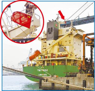 基隆港務(wù)警察局調(diào)查,陽(yáng)明海運(yùn)公司承租的9000噸、塞浦路斯籍“YM FA HA”貨輪19日從香港載貨后,清晨駛?cè)牖「郏2礀|八碼頭卸貨。