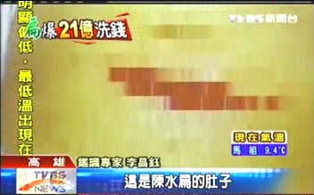 鑒識(shí)專家李昌鈺:“這是陳水扁的肚子,當(dāng)時(shí)我看肚皮的時(shí)候,沒(méi)有知道他貪了那么多錢,陳水扁我見(jiàn)過(guò)幾次面,但是我沒(méi)有想到,就是一個(gè)人貪污了這么多錢財(cái),我心里也是很難過(guò)!