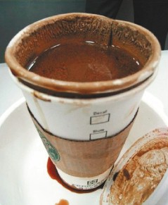 中新網(wǎng)12月11日電 據(jù)臺(tái)灣《聯(lián)合報(bào)》報(bào)道,有顧客指出在臺(tái)灣星巴克購(gòu)買(mǎi)的咖啡,喝下后感到反胃想吐,咖啡散發(fā)惡臭,杯身還軟化變形,事后星巴克坦承咖啡中含有濃縮清潔劑。該顧客要求求償新臺(tái)幣300萬(wàn)。