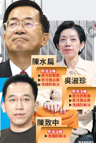 中新網(wǎng)12月12日電 據(jù)臺(tái)灣“今日新聞”報(bào)道,陳水扁家庭“世紀(jì)弊案”12日偵結(jié),臺(tái)灣檢方下午開(kāi)記者會(huì)宣布起訴內(nèi)容,對(duì)陳水扁求處“最嚴(yán)厲之制裁”,至于吳淑珍、陳致中、黃睿靚等3人則是“從重量刑”,其余10名被告請(qǐng)求減輕或免除其刑。
