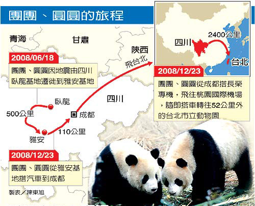 熊貓團團圓圓將抵臺。提早到四川熟悉照顧熊貓的臺北市立動物園飼養(yǎng)員游雪音,將擔(dān)負引兩只熊貓入籠的重任,她認為,團團憨厚、圓圓精明,任務(wù)確有挑戰(zhàn)性。