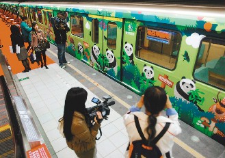 趁著熊貓熱,臺北市觀光傳播局也特別打造“捷運熊貓列車”,每節(jié)車廂外有臺灣黑熊、長鬃山羊、梅花鹿等十二種保育類動物,以及六只可愛熊貓圖案,預(yù)計將行駛至明年三月二十五日。