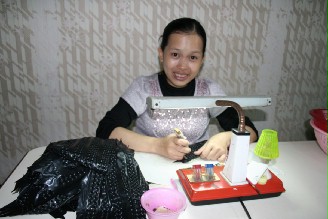 莫愛芳現(xiàn)在已懷胎八個月,前天領(lǐng)完獎,昨天照樣上菜市場買菜,一回家就做家庭代工,臥室里堆滿布偶,“我喜歡動物,老公買給我的!