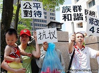大陸配偶在臺權(quán)益遭受歧視,臺灣一團體組織12日前往“立院”抗議,要求公平對待同時為大陸配偶爭權(quán)益。圖片來源:臺灣“今日新聞”